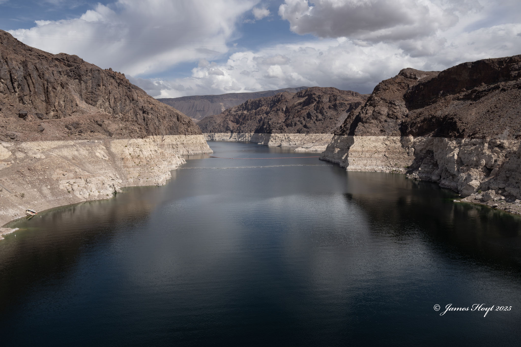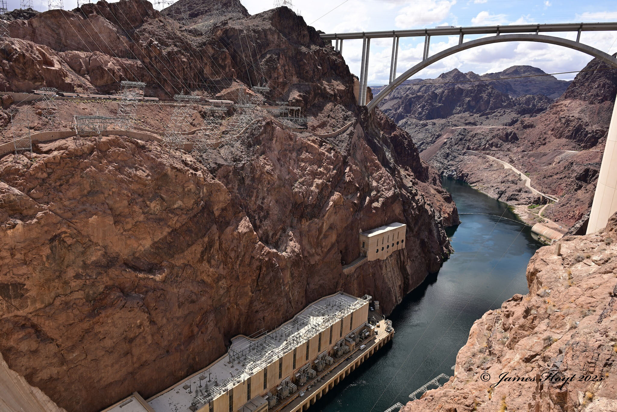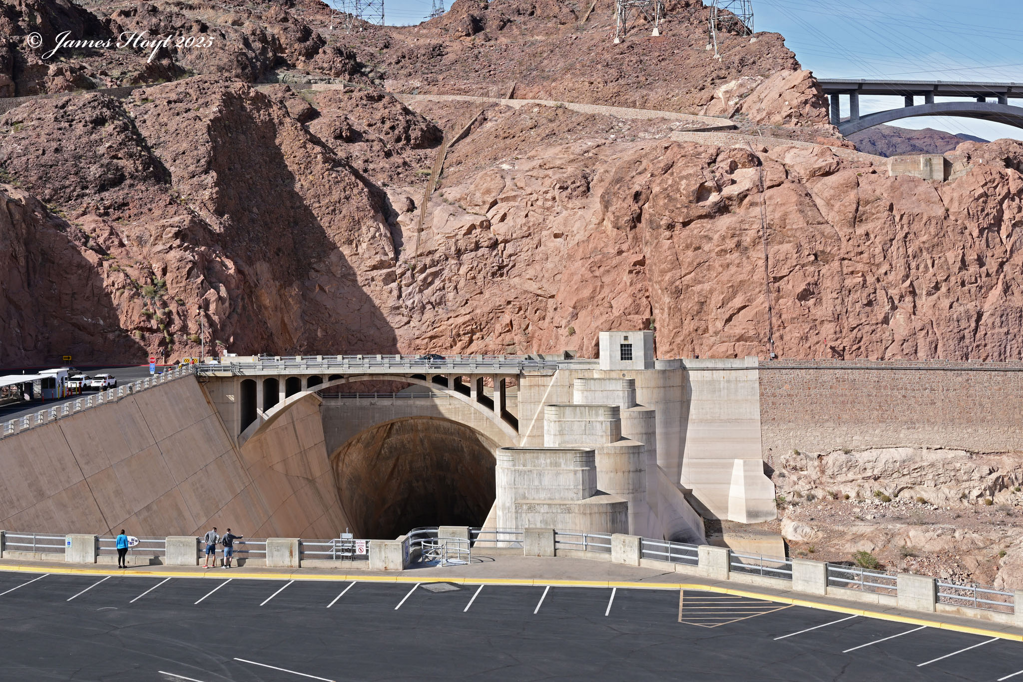 Hoover Dam Turbine power generators. Two 30 Foot inlet pipes that feed the turbines Hoover Dam Colorado River Power transmission cables Storm over Lake Mead
